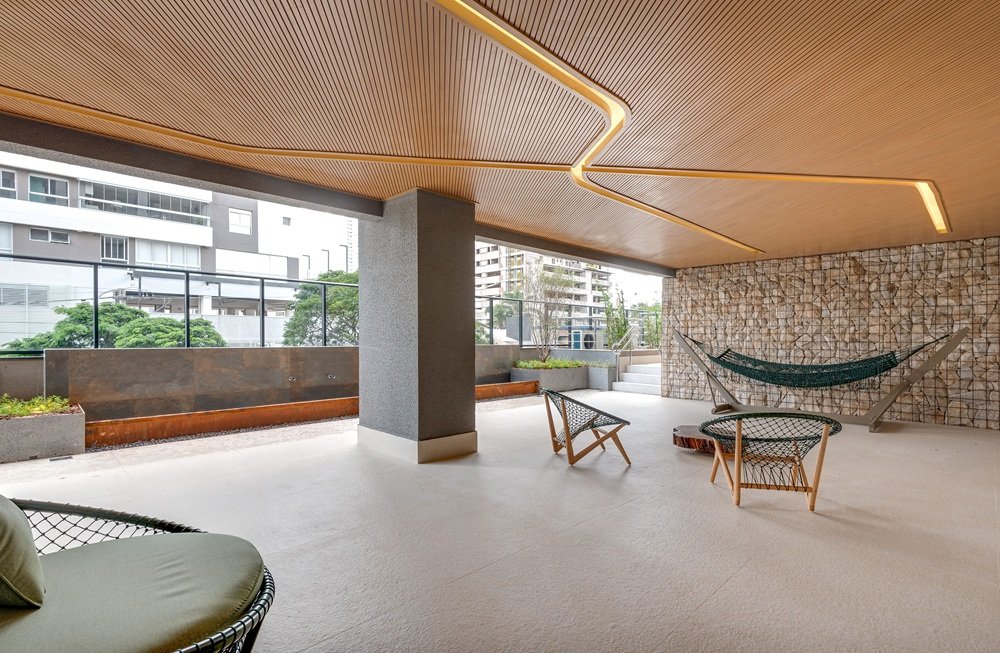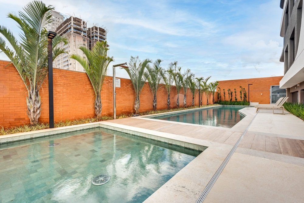 Com uma arquitetura que valoriza formas orgânicas e materiais nobres como madeira e pedra, o Araguaya se destaca por suas varandas generosas com piscinas privativas, que funcionam como verdadeiros quintais suspensos. A integração total entre living e varanda amplia os horizontes e convida a luz natural a entrar.