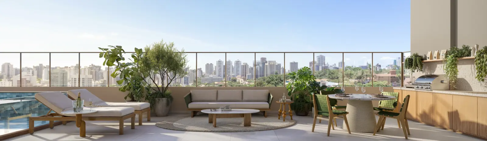 O Opus Gyro Praça do Sol incorpora um Sky Resort de lazer elevado, distribuído em vários pavimentos com piscina climatizada de borda infinita, deck molhado, academia completa, salão de festas, espaço gourmet, wine bar e espaços sociais integrados — proporcionando qualidade de vida e experiências de convivência premium.