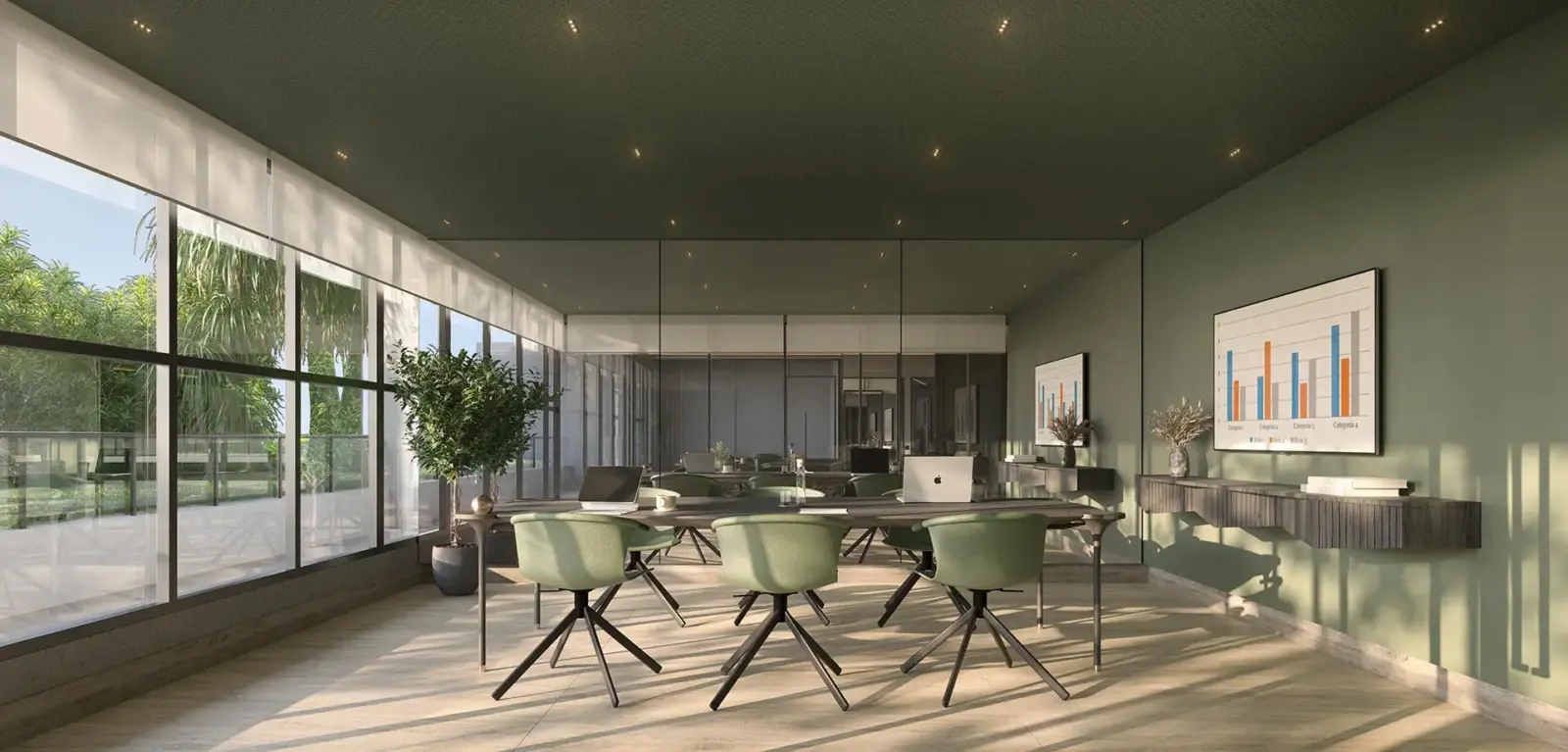 A proposta do Passeo Opus Offices vai além de um mero espaço de trabalho — ele foi concebido como um novo marco corporativo, com ambientes que incluem lobby com pé-direito duplo, salas de reunião, auditório modular, foyer de convivência e rooftop corporativo, proporcionando versatilidade e experiências que elevam a rotina profissional.